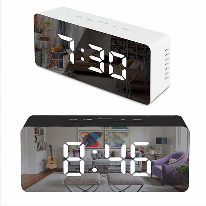 It's a desk or table clock, great for home decoration. Material: ABS+Acrylic; Size: 38.1x13.97x8.89 inches; LED Light: Blue, white; Shape: Rectangle; Feature: customized; Type: Mirror LED backlight; Function: LED time display, 12/24 hour formate selectable, alarm and snooze, temperature display in C/F, night mode setting, mirror function.
